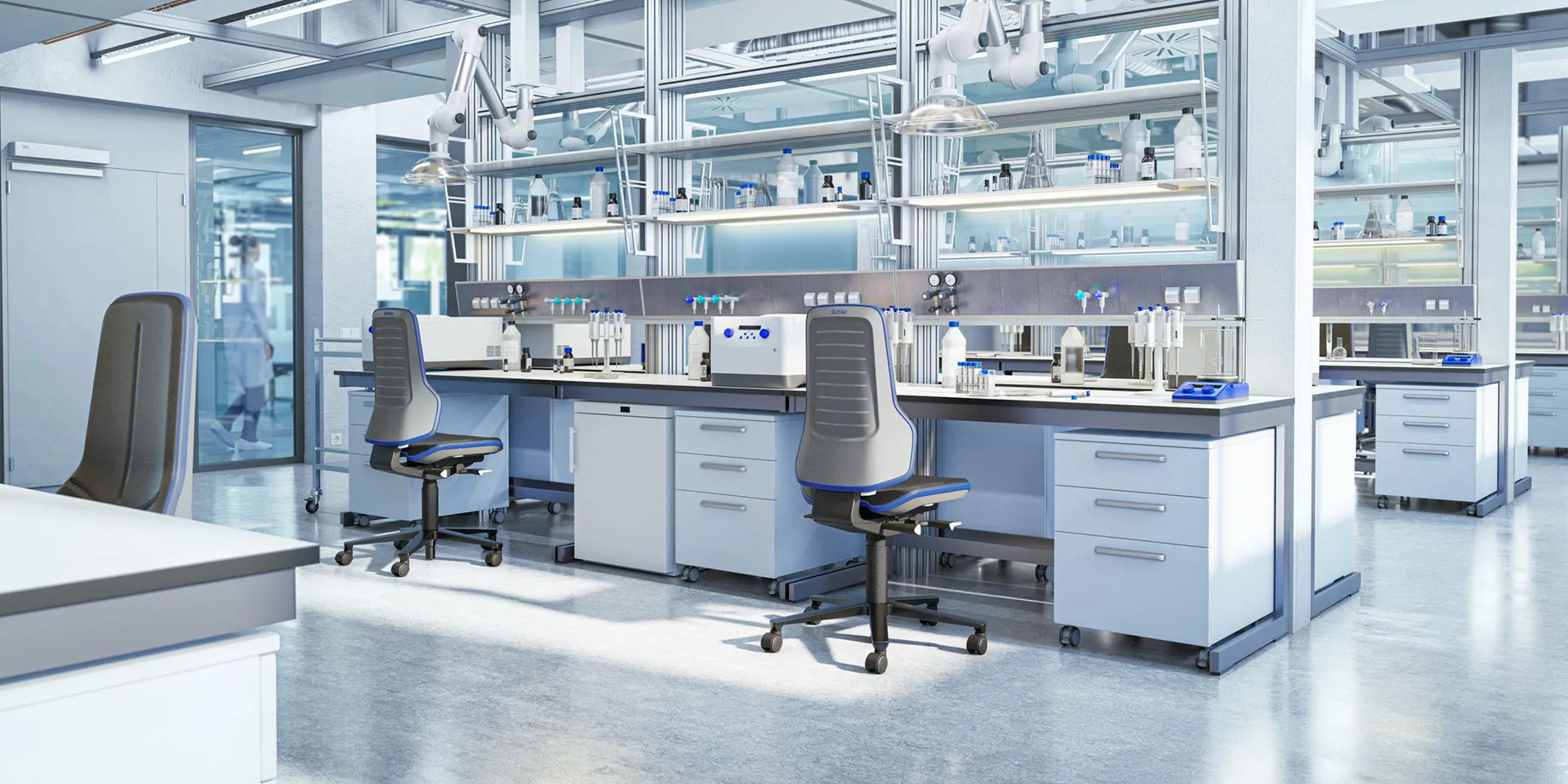 Sedia da laboratorio di nuova generazione, unica per design e ergonomia