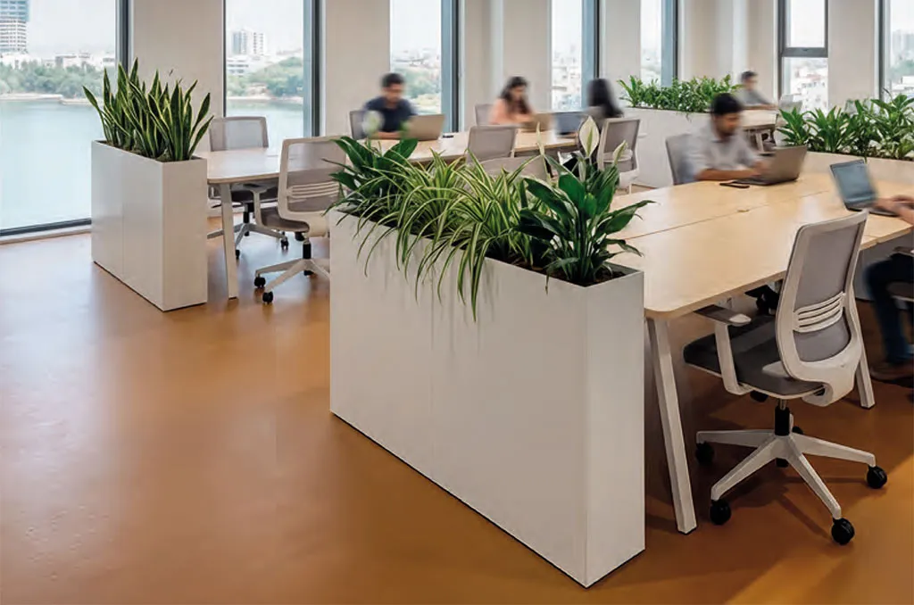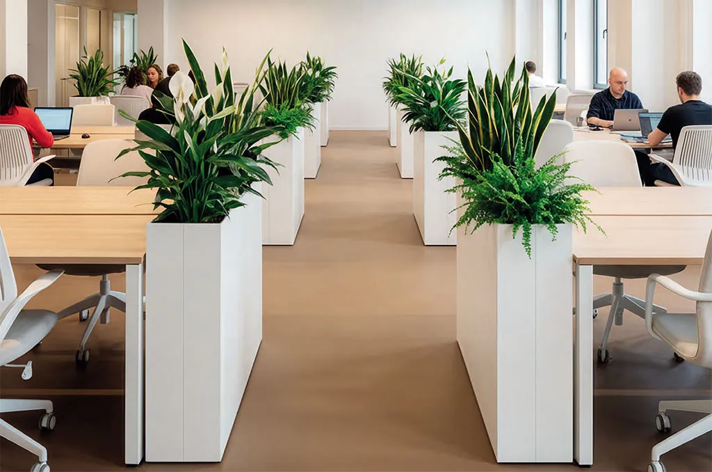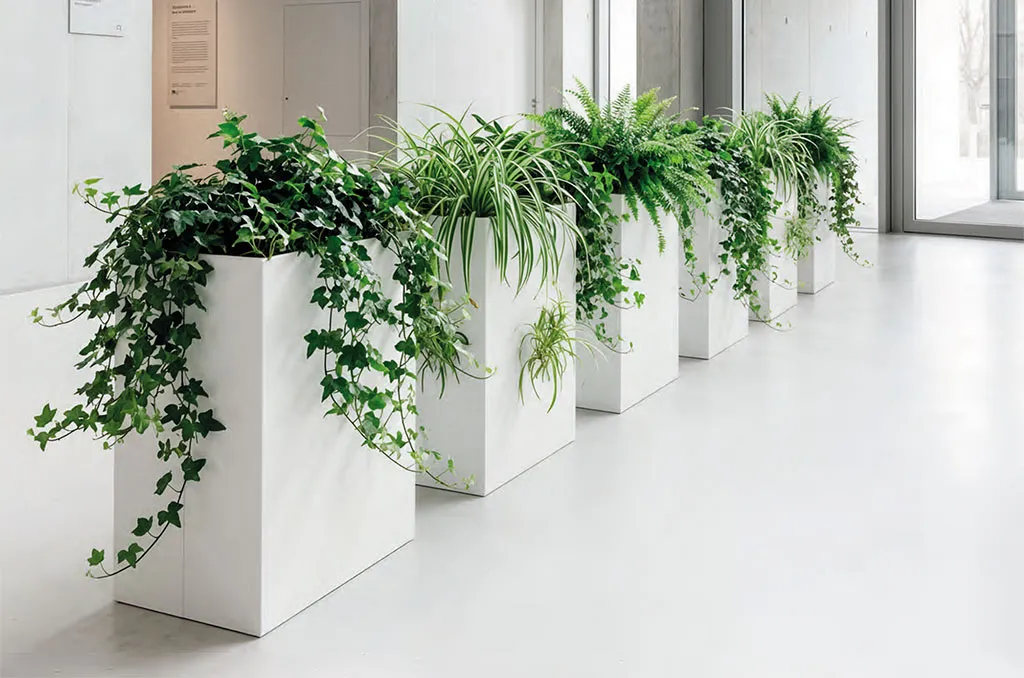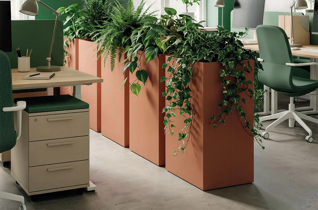 Portavasi con fusto in acciaio verniciato con polveri epossidiche.