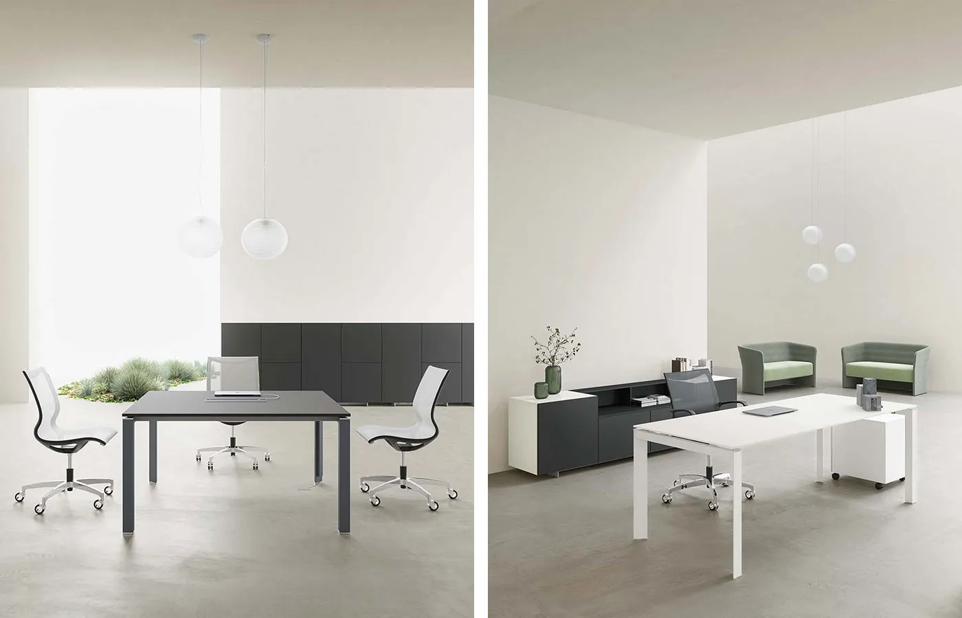 La gamma DV801 Entity offre una vasta modularità, adattandosi a diverse configurazioni d'ufficio:
