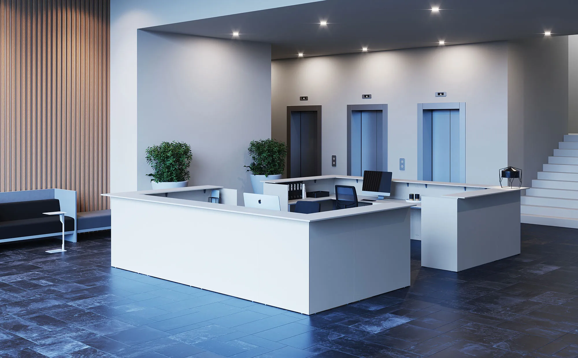 Il banco reception per ufficio e hotel Baguette Frezza è disponibile in due profondità, 60 e 80 cm per soddisfare esigenze di spazio e proposta in più lunghezze. L'elevata flessibilità e la modularità sono i due punti di forza dell'arredo ufficio reception Baguette che nasce dalla combinazione di scrivania Pop Easy, Square, Ace e Woody, a cui vengono fissati dei pannelli verticali di altezza pari a 110 cm ed elementi ad angolo per composizioni più articolate.