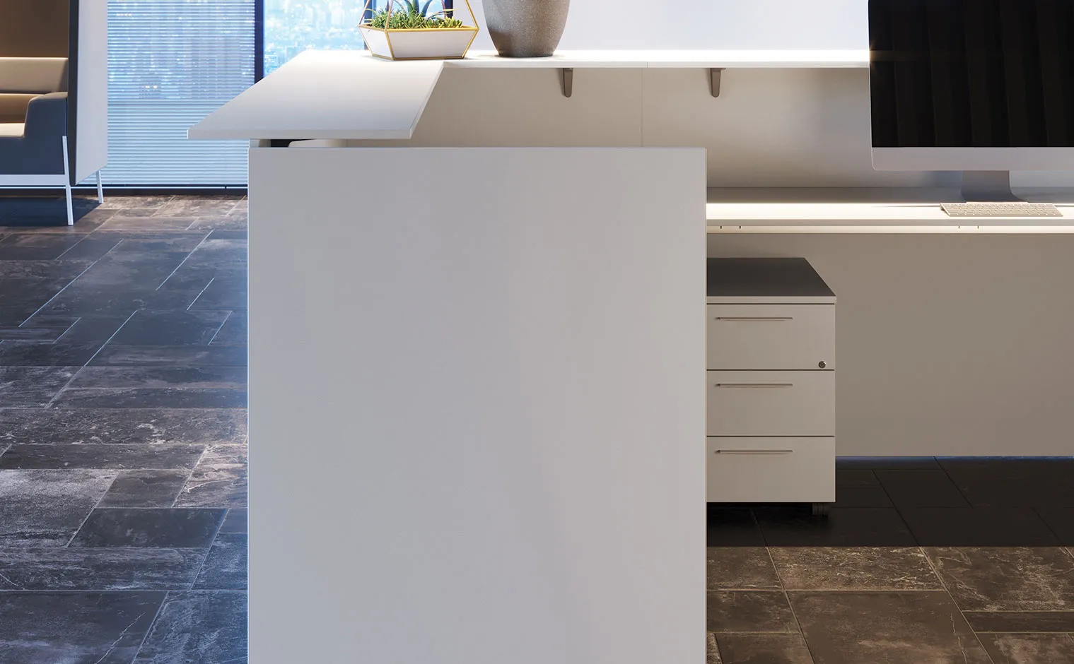 Il fianco terminale strutturale chiude l'intera workstation ed è proposto in due profondità 62 cm e 82 cm.