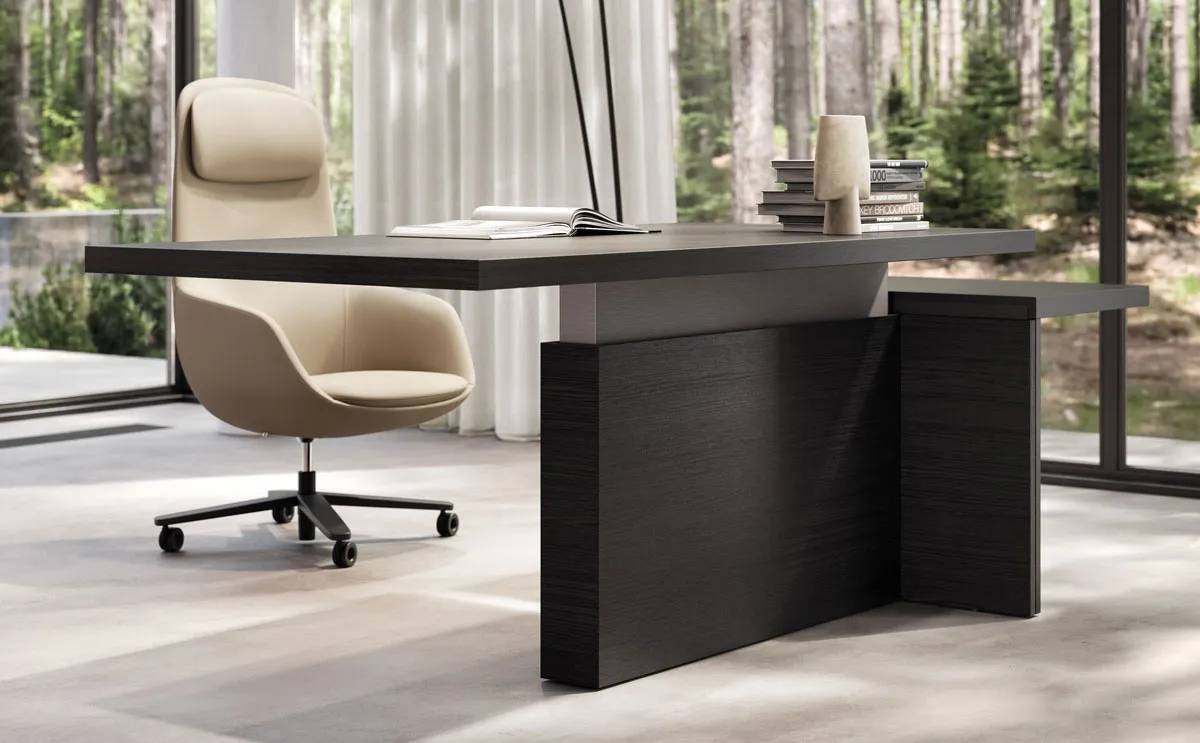 L'animo maestoso e raffinato della scrivania per ufficio presidenziale Mux70 viene controbilanciato dalla sua estrema funzionalità e personalizzazione.