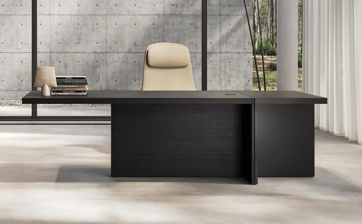 La scrivania presidenziale Mux70, destinata ad arredare uffici direzionali contemporanei e del futuro, è concepita per rispondere alle esigenze dei manager moderni e supportarli nell'affrontare le sfide quotidiane.