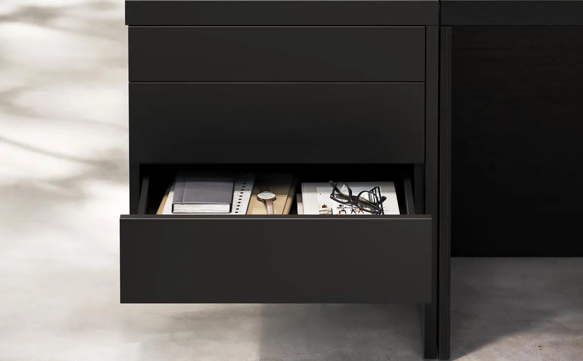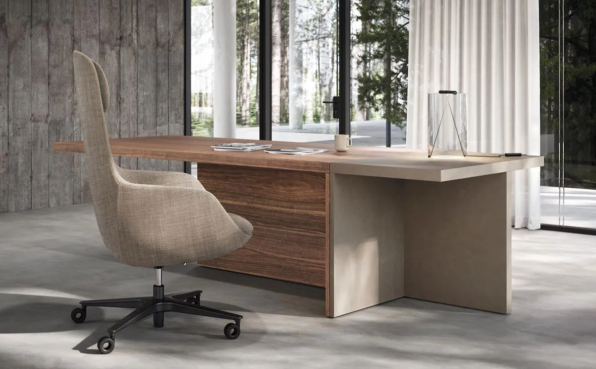 Pratici allunghi laterali, cassetti sottopiano, cassettiere appese, elementi di servizio, madie e fioriere diventano accessori indispensabili per conservare le strumentazioni personali, consentendo ai Millennial manager di dare vita ad una vera e propria oasi che abbraccia i concetti di comfort e di benessere psico-fisico sul posto di lavoro.