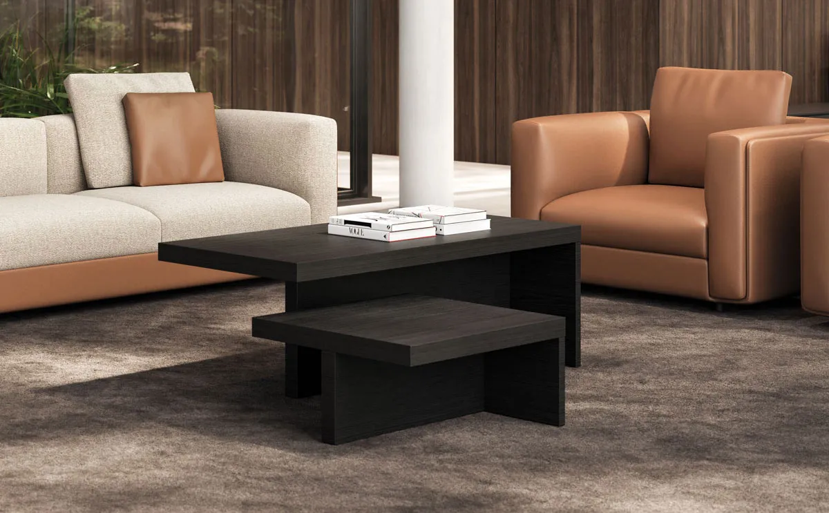 Il tavolino caffè di design della collezione Mux70, è disponibile sia con piano rettangolare che quadrato, può essere personalizzato con pregiate finiture in Fenix o legno, consentendo di adattarlo allo stile dell'ambiente circostante.