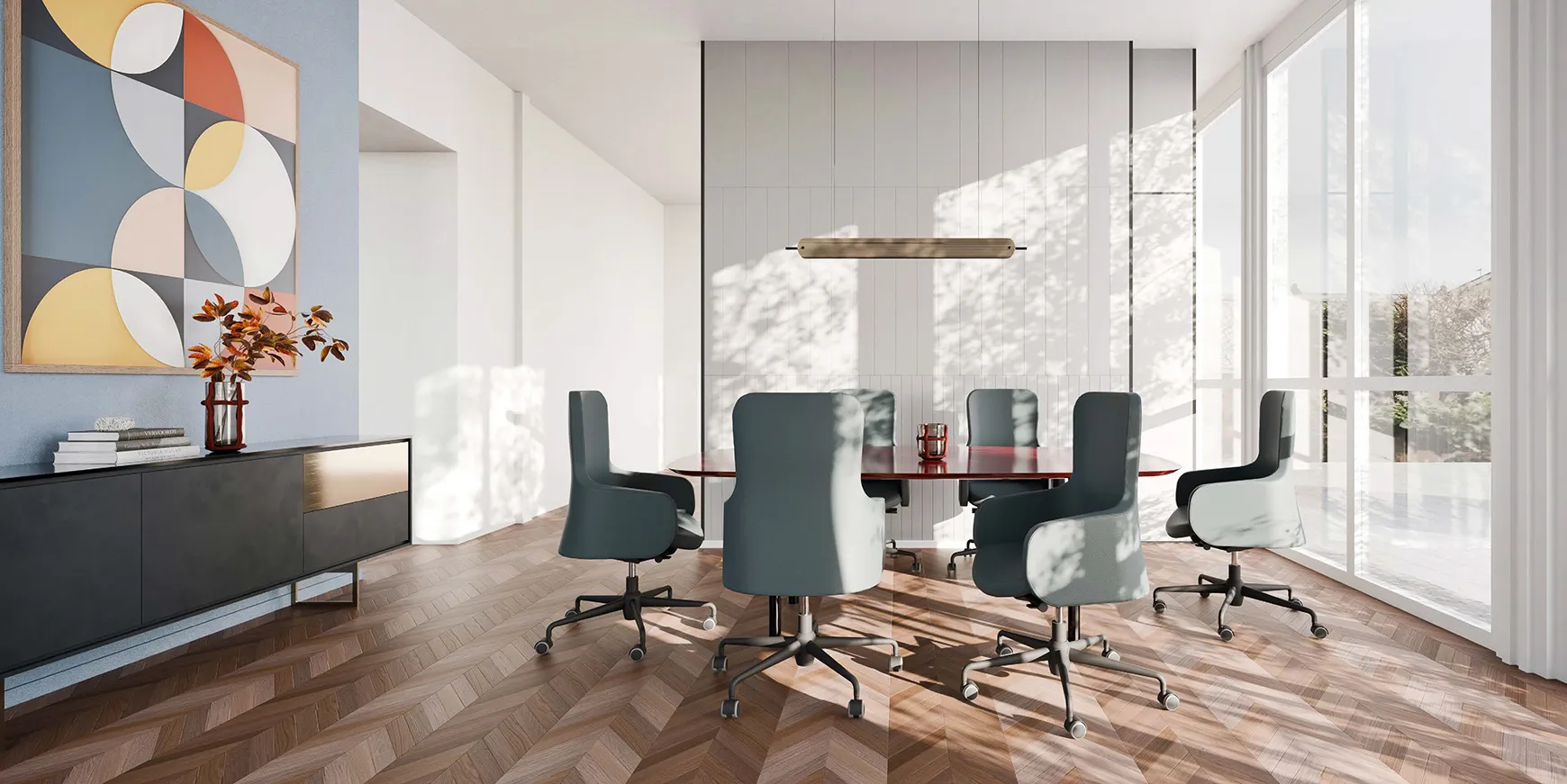 Lo schienale in poliuretano è morbido e robusto, mentre il meccanismo utilizzato permette un'alta personalizzazione della posizione, garantendo la giusta postura e la produttività.