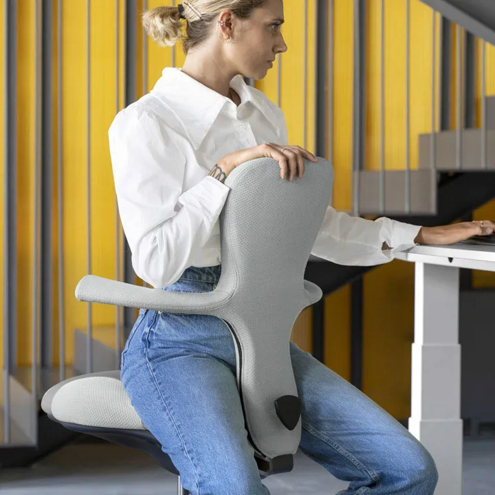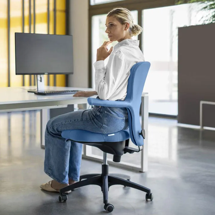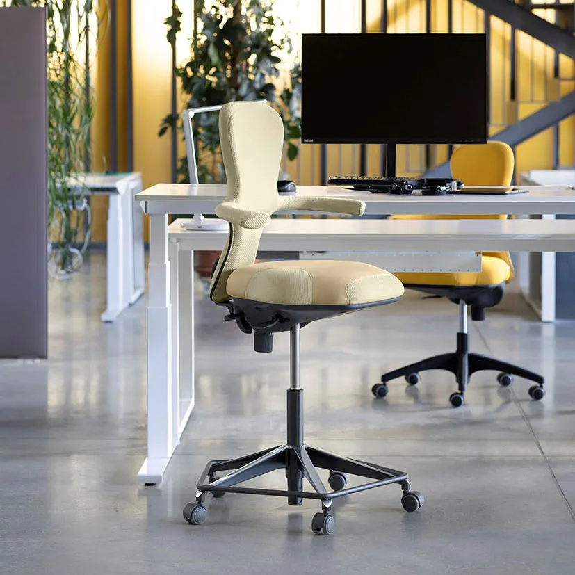 Moving 73, brevetto di casa Moving, è una seduta tecnica innovativa progettata per rispondere alle esigenze di regolazione in altezza delle scrivanie.
