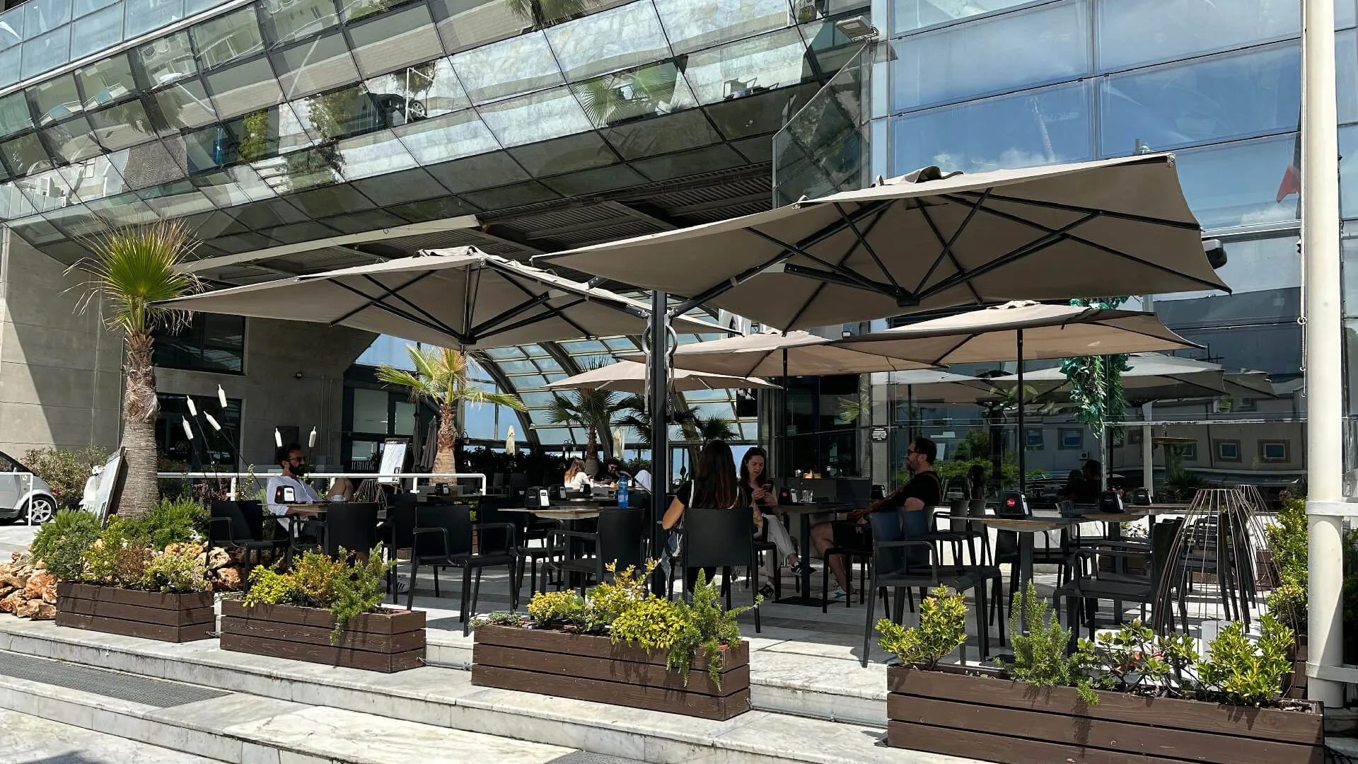 Adatto per tutti gli ambienti e consigliato per uso professionale (bar, ristoranti, hotel e dehor). Telaio in alluminio con effetto antracite metallizzato. Struttura robusta composta da 2 ombrelloni affiancati ed ancorati ad un unico sostegno.