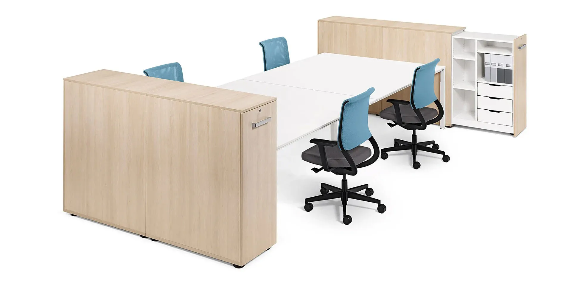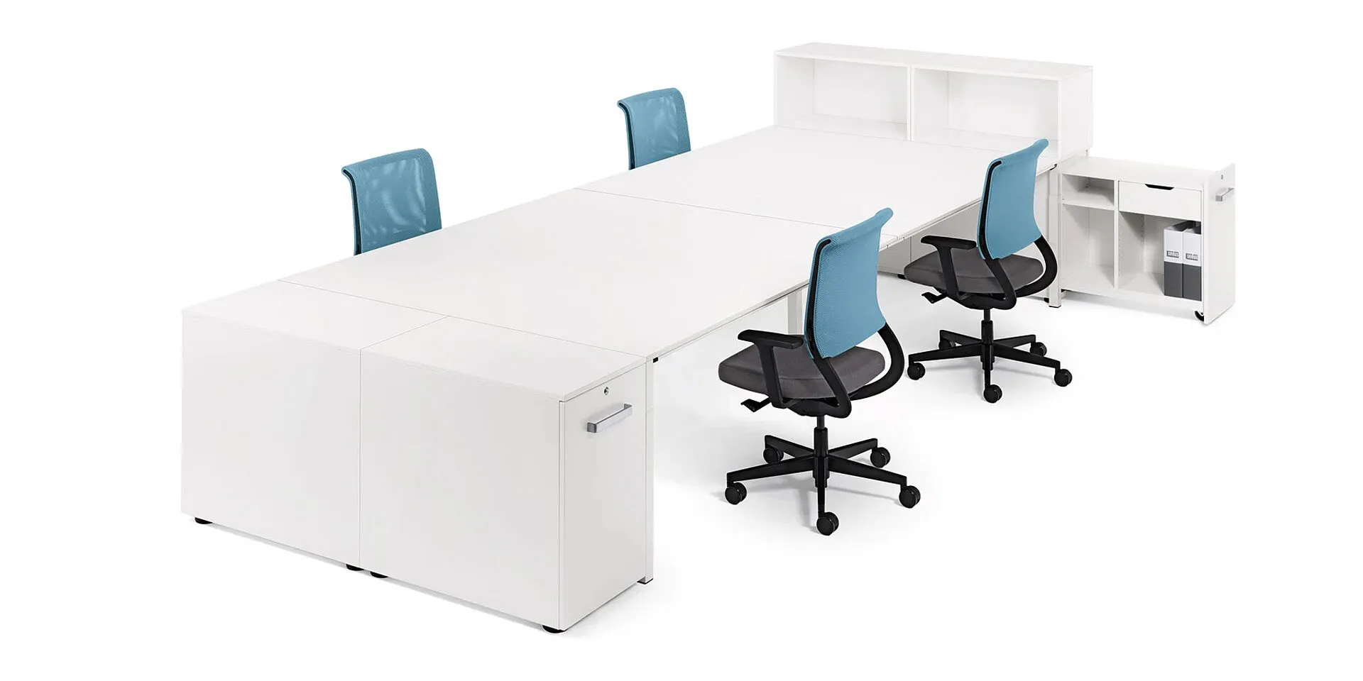 Oltre al modello plus, anche il contenitore alto offre molta capienza e un prezzo interessante. Elegante nell'aspetto, polifunzionale e disponibile in tre diverse profondità, è ideale ad esempio per riporre classificatori e cartelle sospese. L'altezza del contenitore alto lo rende ideale anche come divisorio e consente di lavorare in piedi, favorendo le riunioni spontanee.