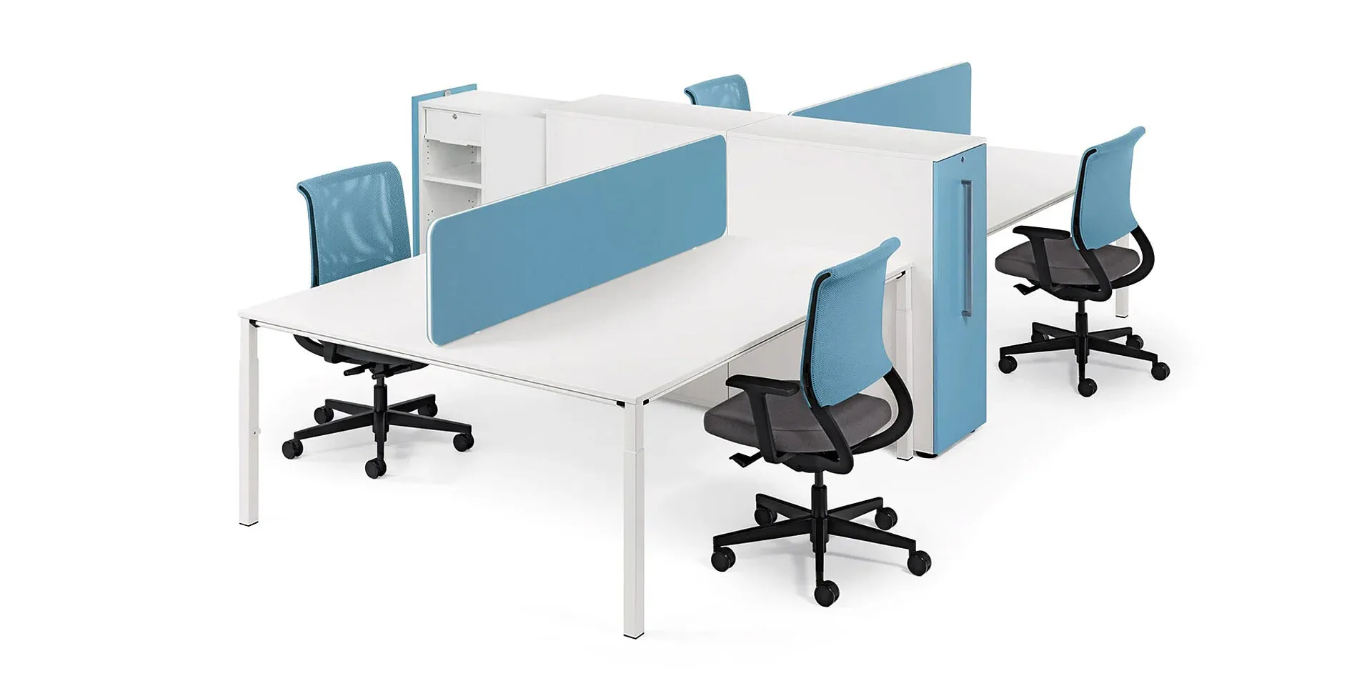 I contenitori alti plus sono molto più di semplici mobili per l'archiviazione. Grazie al design accattivante e alla struttura di intelligente concezione, questi elementi divengono arredi multifunzionali utili per allestire e organizzare i diversi ambienti dell'ufficio. Ad esempio, possono essere impiegati per schermare le postazioni di lavoro; al contempo, si prestano come luogo di scambio con una superficie portaoggetti aggiuntiva, poiché il top, se aperto completamente, funge da returntable.