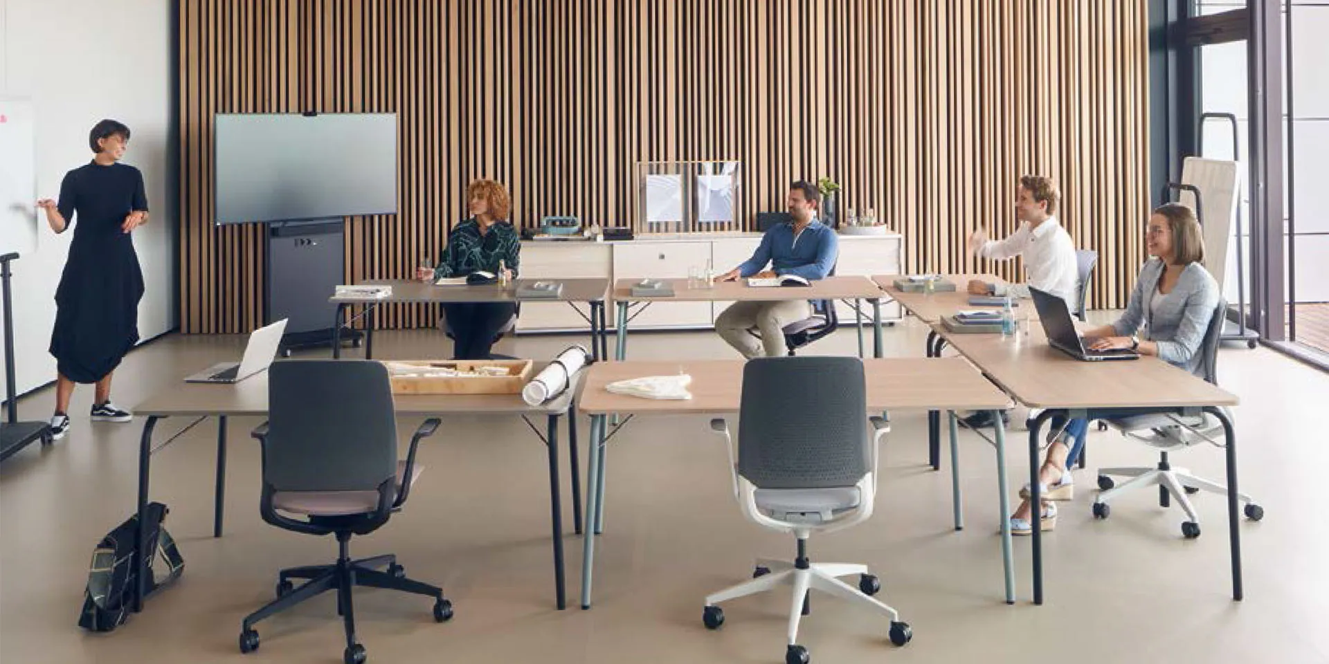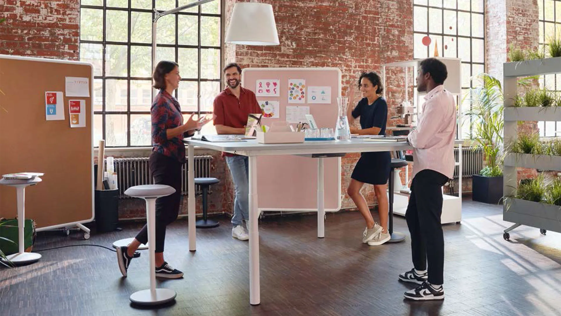 Passare comodamente dalla posizione seduta a quella in piedi, anche durante riunioni o meeting. Questo è possibile grazie allo spazioso tavolo se:lab meet & stand con regolazione dell'altezza ad elettronomotore. A seconda delle dimensioni dell'ambiente e dell'allestimento, il piano può essere quadrato o rettangolare e anche con angoli arrotondati.