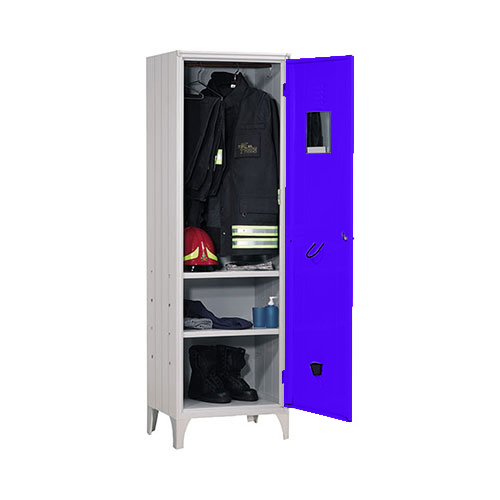 Armadietto spogliatoio su piedi con taglio specialistico per i vigili del fuoco.