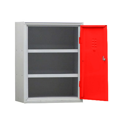 La struttura portante é realizzata in lamiera d'acciaio profilata di prima scelta con spessore 6/10, con ante rinforzate e dotate di feritoie di aerazione nella parte superiore ed inferiore. L'armadietto é corredato di cerniere interne speciali antiscasso, bordo frontale perimetrale arrotondato anti urto raggio mm 6, nervature longitudinali su fianchi e porte, asole sul tetto per consentire un'ottima circolazione dell'aria.