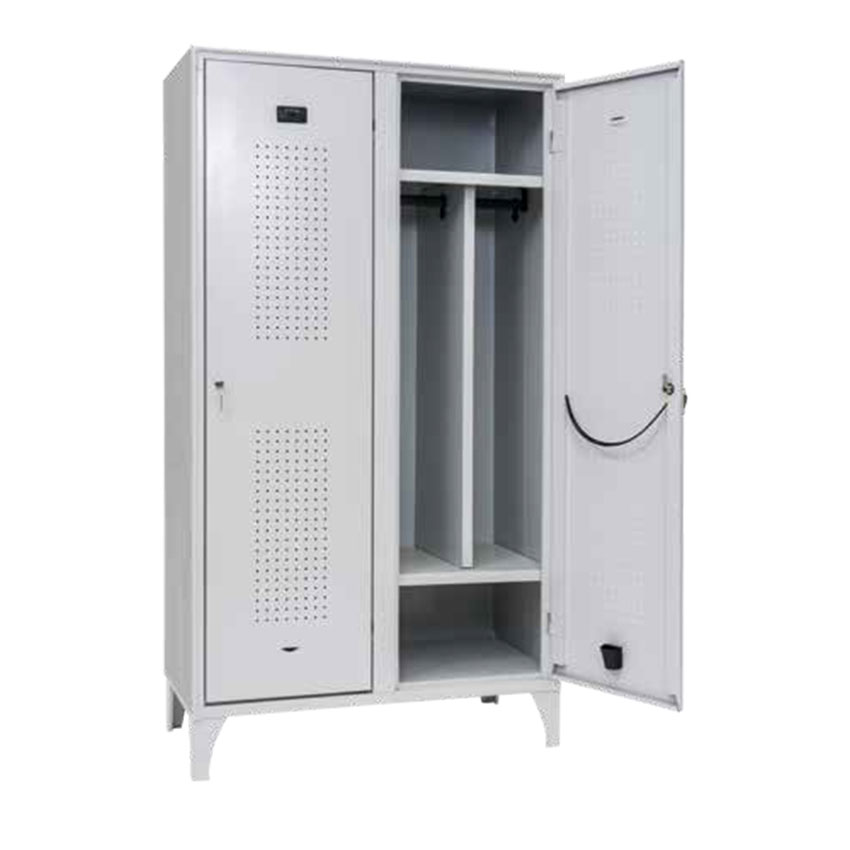 Grazie al loro design innovativo con un divisorio interno, questi armadi offrono due scomparti verticali distinti in un'unica struttura compatta. Un lato è destinato agli indumenti personali e puliti, l'altro a quelli usati e potenzialmente contaminati. In questo modo, si elimina ogni rischio di contaminazione incrociata, proteggendo la salute dei lavoratori e l'integrità dell'ambiente di lavoro.