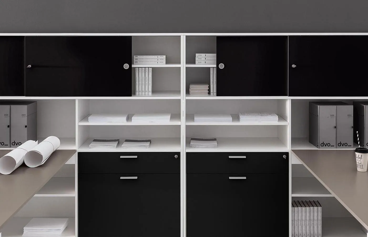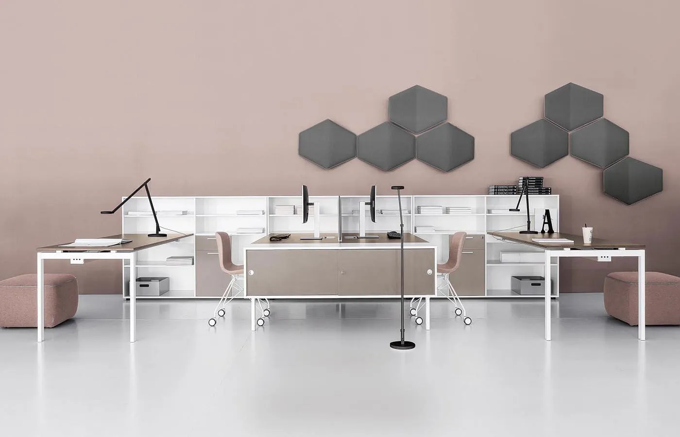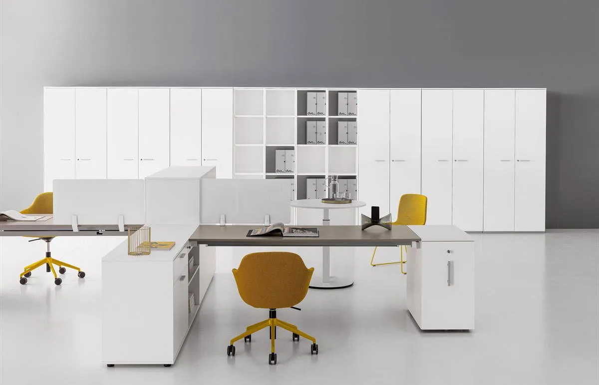Contenitori integrati che permettono di completare e di attrezzare il posto di lavoro, garantendo diverse funzioni tra le quali: ampio spazio per il contenimento e larchiviazione, utile predisposizione ed efficiente canalizzazione dei cablaggi, possibilità di creare molteplici soluzioni in grado di configurare lo spazio di lavoro con privacy e personalizzazione.