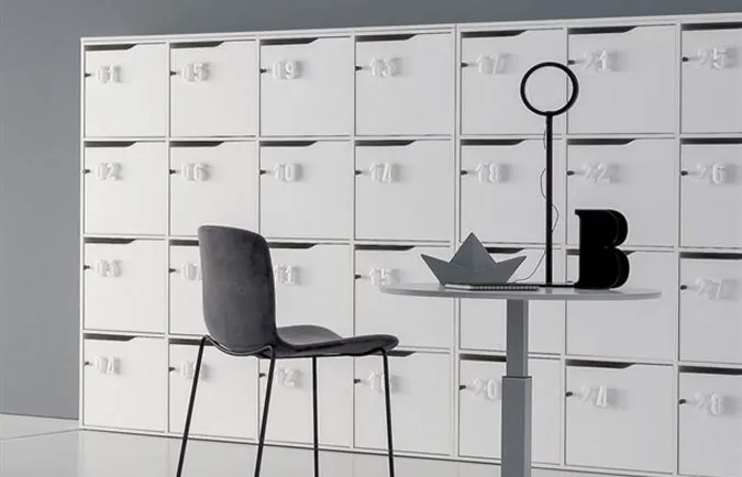 Pratici e utili contenitori destinati a diversi ambienti di lavoro in cui si presenta la necessità di contenere o custodire documenti ed effetti personali. Modulari e componibili, essi si possono adattare secondo le svariate richieste del cliente. Attuali, freschi, giocosi, diventano eleganti e riconoscibili soprattutto nelle versioni con le ante colorate: disponibili con serrature in diverse tipologie e con numeri integrabili.