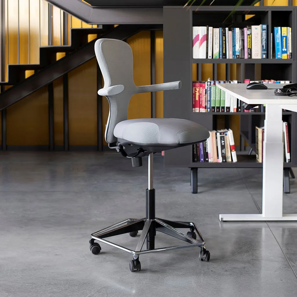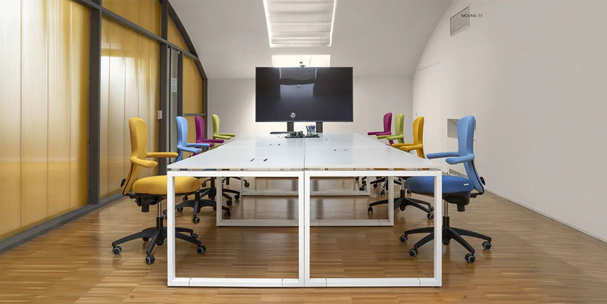 Moving 73, brevetto di casa Moving, è una seduta tecnica innovativa progettata per rispondere alle esigenze di regolazione in altezza delle scrivanie.