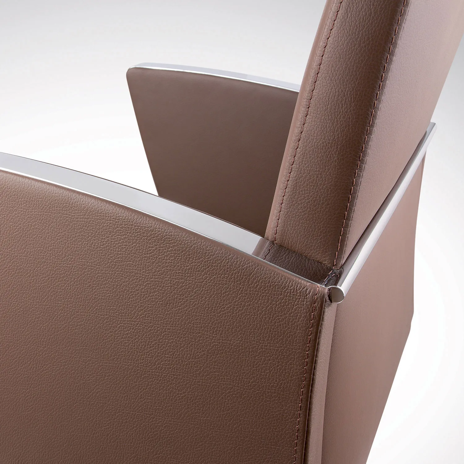 I braccioli sono realizzati in acciaio cromato o verniciato (25x5mm) e possono essere rivestiti per un comfort aggiuntivo??. Inoltre, è possibile personalizzare la versione direzionale con un comodo poggiatesta, per maggiore comfort.