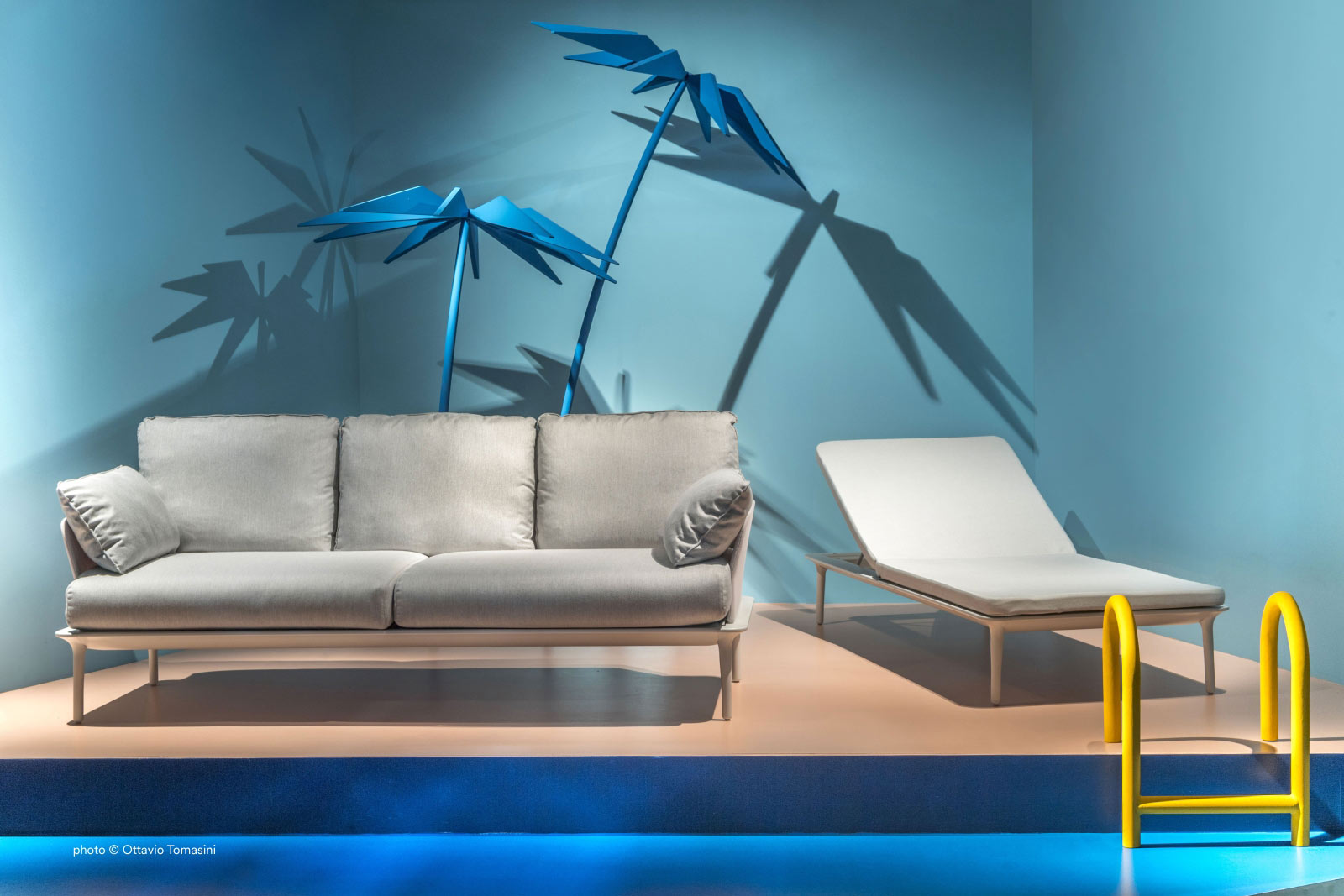 Reva è una collezione outdoor caratterizzata da linee morbide e dimensioni generose. Divano a tre posti con sottile cornice perimetrale in estruso di alluminio sorretta alle estremità da quattro gambe affusolate in pressofusione dalluminio, che ne rimarcano il disegno pulito. Cuscini in poliuretano espanso rivestiti in tessuto impermeabile.