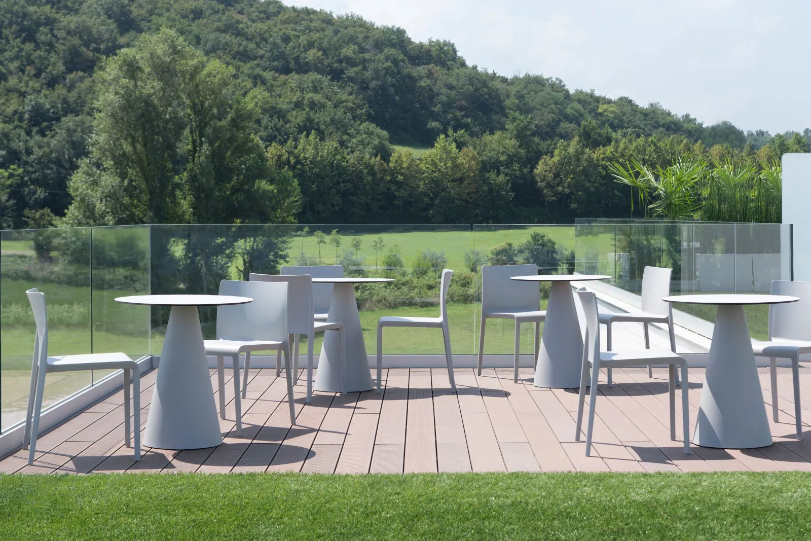 La collezione Volt è elegante e accogliente. Si caratterizza per il tratto sottile, la forma ergonomica e le gradevoli proporzioni. Poltrona stampata ad iniezione con gas air moulding, realizzata al 60% da polipropilene riciclato derivante da materiale post industriale.