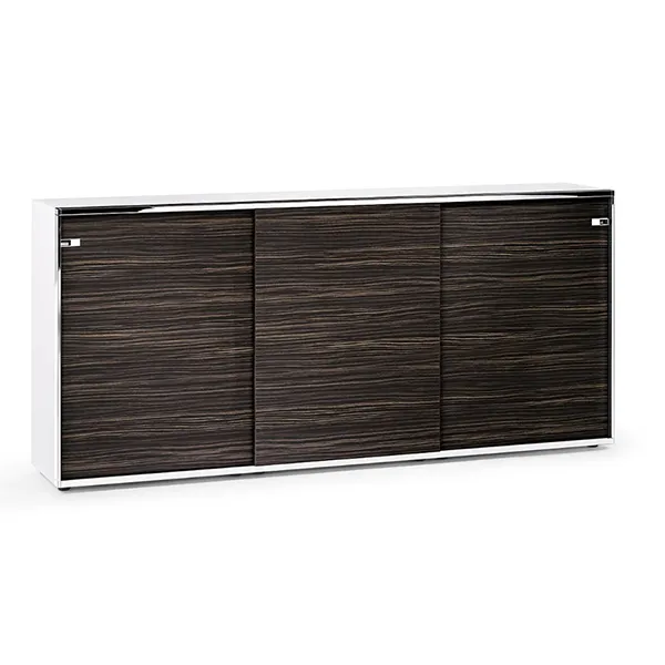 La caratteristica distintiva della collezione di armadi Relations Sedus è il profilo del telaio in alluminio anodizzato o cromato che forma una sorta di cornice a passepartout, racchiudendo elegantemente le ante scorrevoli e fungendo contemporaneamente da guida. Grazie a questo particolare meccanismo, le ante scorrono interamente allinterno del modulo, per un accesso ottimale ai documenti e al materiale di lavoro. Sedus relations è disponibile in versione base, come modulo sovrapponibile e lowboard. Per le ante è possibile scegliere limpiallacciatura in legno naturale, la superficie in melaminico o in vetro, con diverse combinazioni e numerose varianti di arredo.