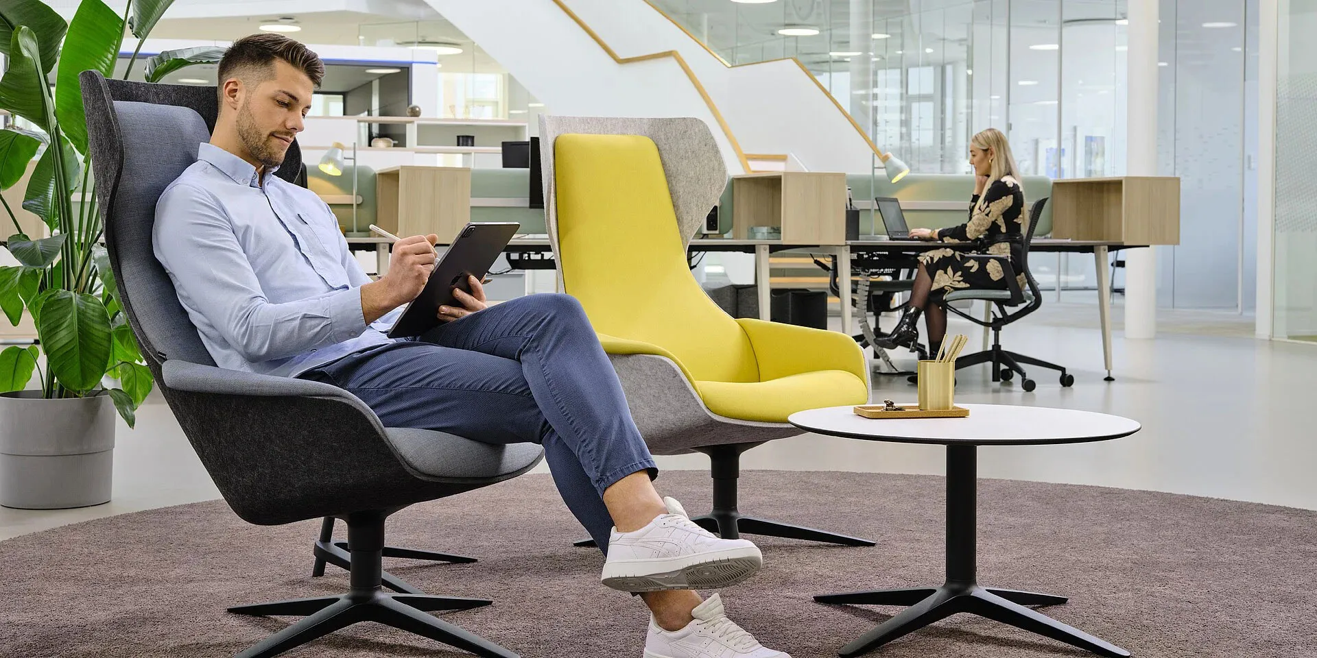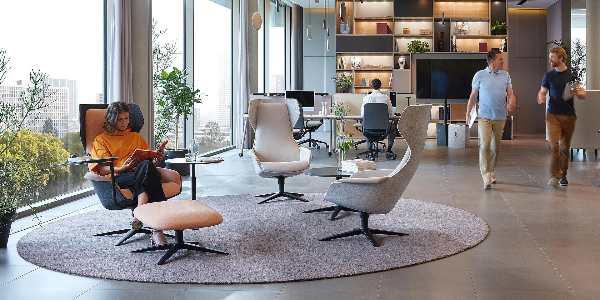 Un ambiente armonioso contribuisce in modo decisivo al benessere e alla produttività. Un allestimento ben pensato, con una piacevole combinazione di materiali e superfici e la scelta delle giuste note di colore completano perfettamente il quadro generale. I quattro universi di colore Smart Balance, Urban Living, Soft Being e Multi Creation possono essere utilizzati per progettare interi ambienti di lavoro, anche con poltrone Se:Lounge Sedus abbinate.